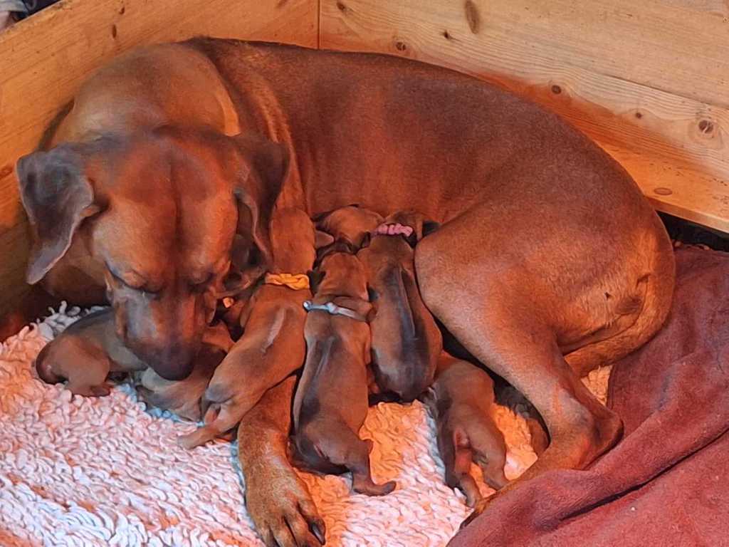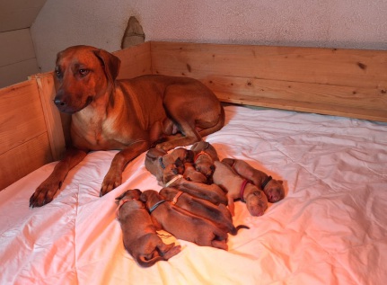 Unsere Hündin Bahiga vom Sonnenhof Dornieden ist nun zum ersten Mal Mutter geworden