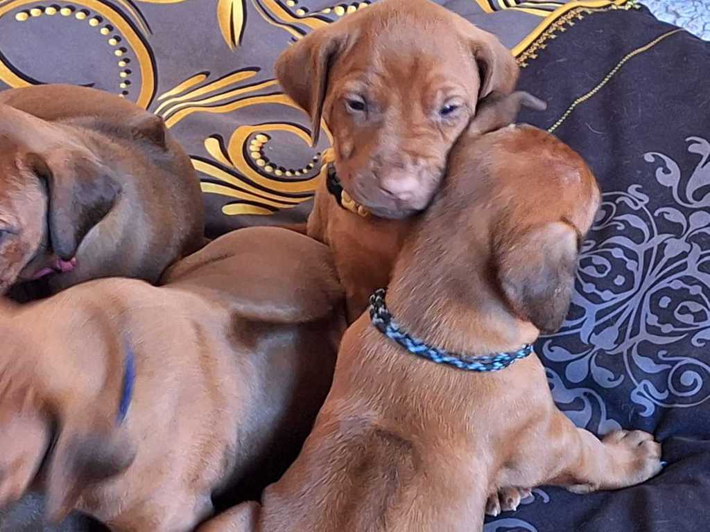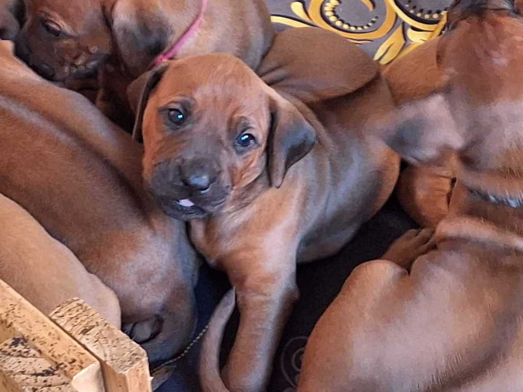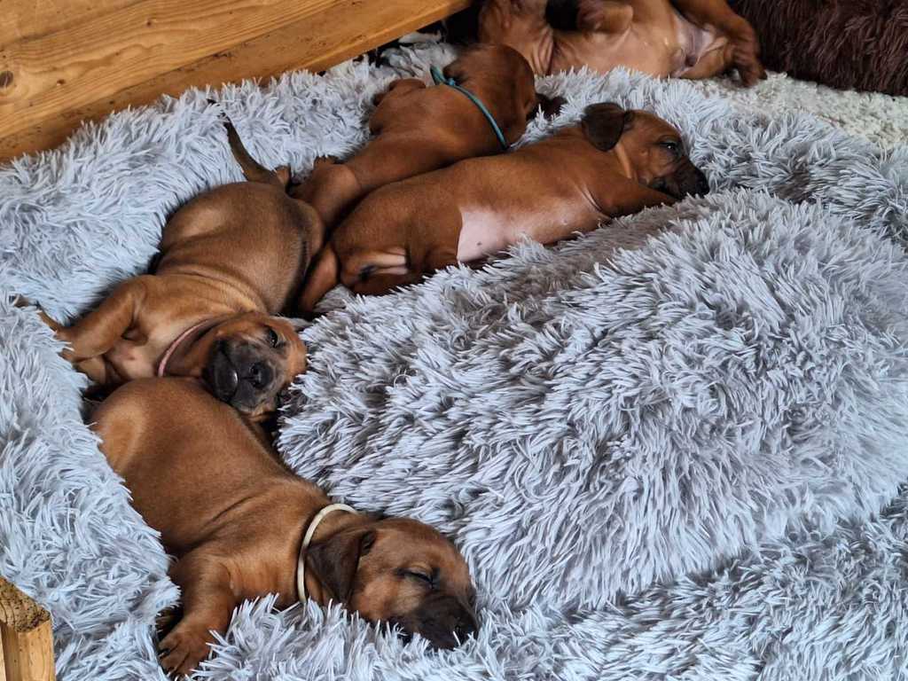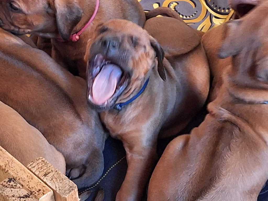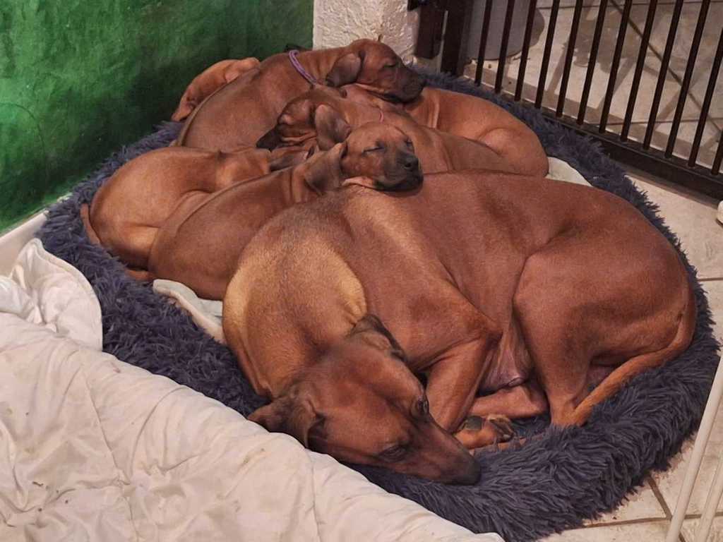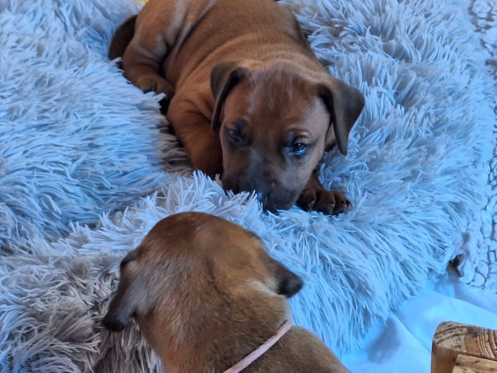 Daima strahlt eine Menge Ruhe und Selbstbewusstsein aus. Kein Wunder, dass er schon 2019 in jungen Jahren bei der „Rhodesian Ridgeback Sonderschau“ in Hamm viel Lob von den Richtern und eine ausgezeichnete Bewertung für seinen Auftritt einheimsen konnte. Danach wurde er offiziell als Deckrüde zugelassen. Diese Eigenschaften haben auch unsere Shadow beeindruckt, so dass wir uns jetzt über Nachwuchs freuen dürfen.